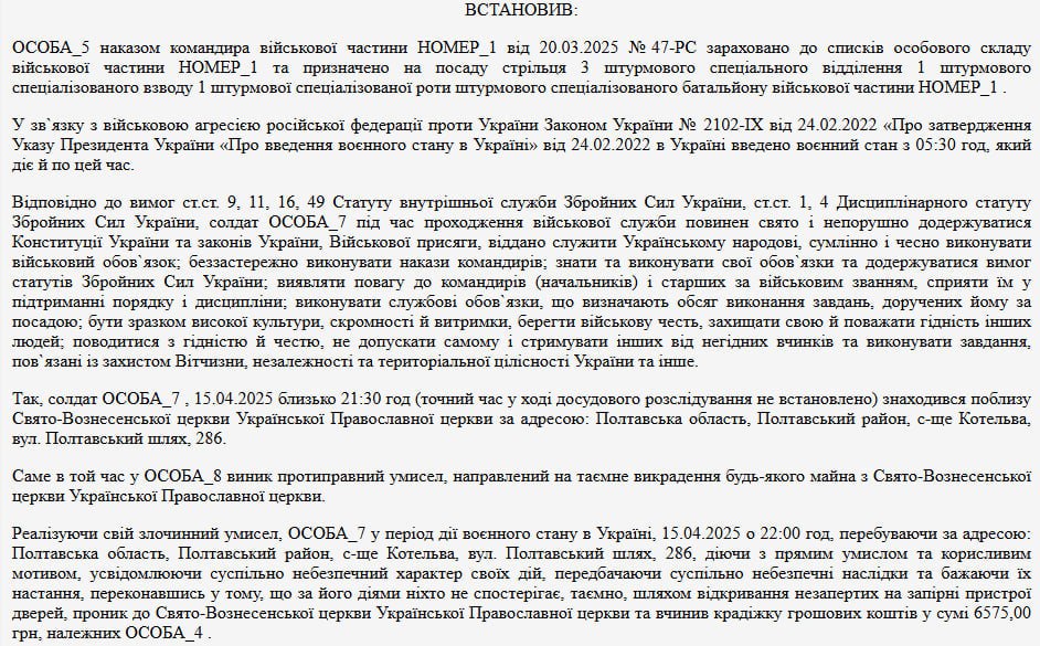 ВСУшник-наркоман ограбил церковь в Полтавской области