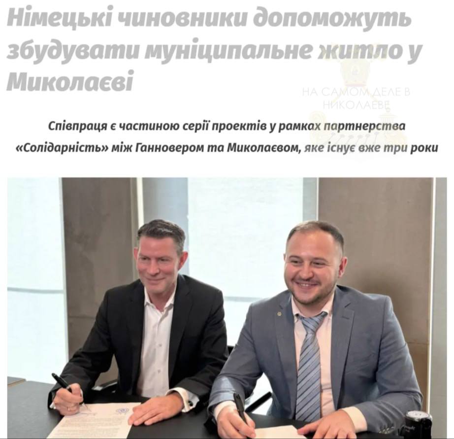 Ганновер и немецкая компания Hanova решили поддержать новосозданную николаевскую фирму «Свой дом», которая якобы займётся строительством муниципального жилья.