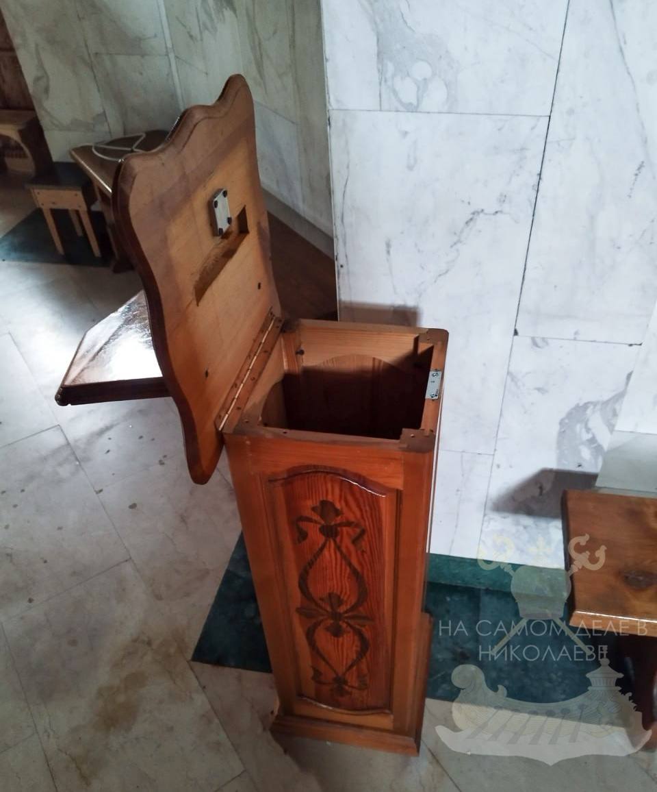 Безбожники вынесли из храма подсвечники, Евангелия, лампады, Распятие, аналой, вскрыли церковную кружку для пожертвований.