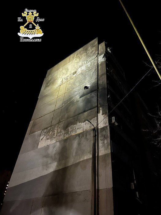 Дрон врезался в стену 9-этажного здания на уровне седьмого этажа и взорвался, пробив отверстие около метра, в квартире был пожар.