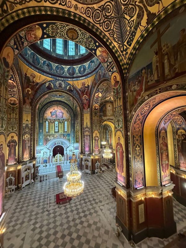 Третий по размеру после Храма Христа Спасителя и Исаакиевского собора. Строили 100 лет, дважды начинали заново, достроили перед самой революцией, но как будто так и надо было — выстрадать его, чтобы потом ничего с ним не случилось худого. Так и было: ни росписи, ни алтарь не пострадали, храм дошёл до наших дней во всём своём великолепии. Хотя у отца Георгия не забалуешь, и в великолепие придёт всё — огонь в человеке созидательный.