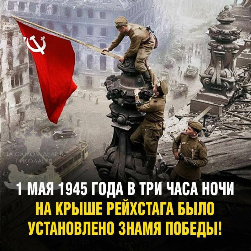 Ночью 30 апреля 1945 года в 22:40 по берлинскому времени, когда в Москве уже наступило 1 мая, на куполе поверженного рейхстага взвилось красное Знамя Победы
