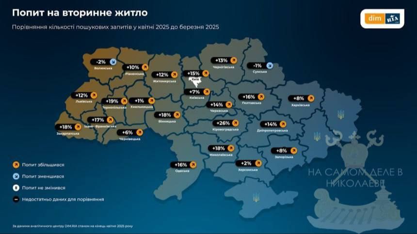 По сравнению с мартом 2025 года, в мае спрос на рынке вторичного жилья в Николаевской области увеличился на 18%.