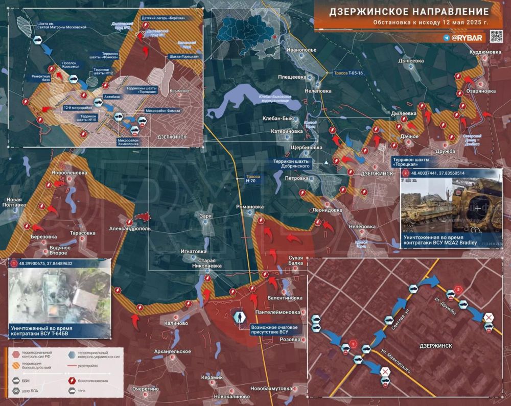 В ходе данного самоубийственного штурма противнику не удалось закрепиться в самом Дзержинске. По данным с мест, украинскими формированиями было потеряно порядка 12 единиц бронетехники. При этом ситуация на направлении продолжает оставаться сложной, а на окраинах упомянутого города не удается закрепиться ни ВС РФ, ни ВСУ. Связано это прежде всего с перенасыщением участка дронами с обеих сторон.