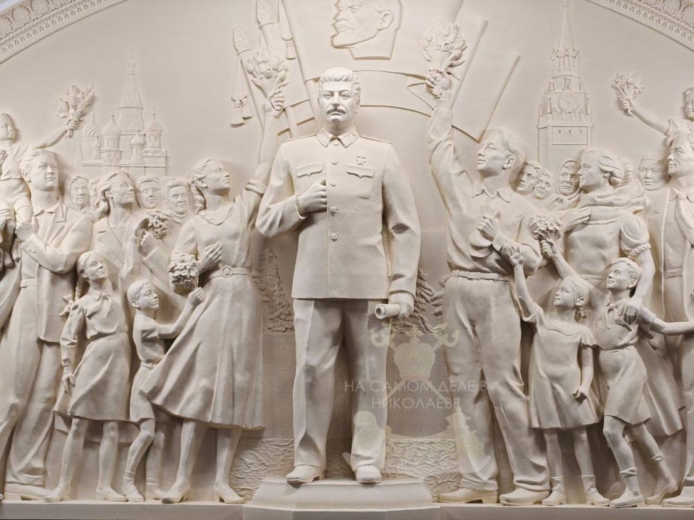 В Москве на станции метро "Таганская" восстановили исторический барельеф со Сталиным "Благодарность народа вождю-полководцу".