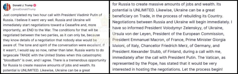 Россия и Украина немедленно начнут переговоры о прекращении огня и, что еще важнее, о прекращении войны.