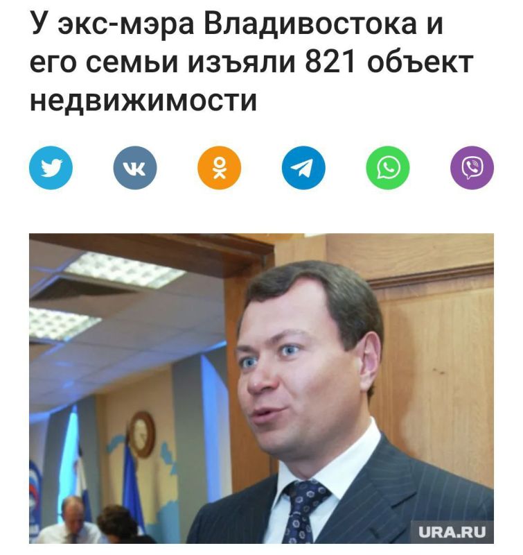 821 квартиру и 590 млн рублей изъяли у бывшего мэра Владивостока Владимира Николаева.