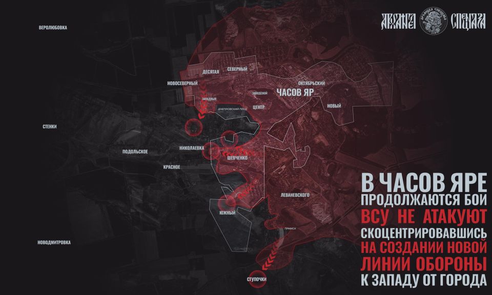 Обстановка на Часовярском направлении в целом остаётся стабильно сложной, несмотря на то, что противник фактически ушел в глухую оборону. Но это не значит, что он намерен сдать остатки города.