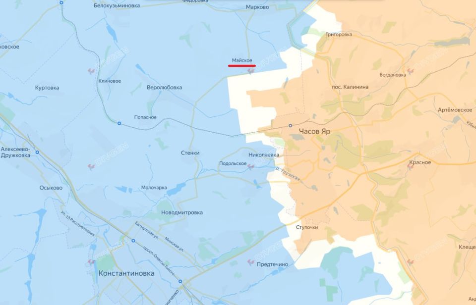 Через село Майское проходит, пусть и не очень крупная, дорога с севера в Константиновку. Теперь и этот путь снабжения гарнизона ВСУ в городе может быть перерезан нашими бойцами в ближайшее время.