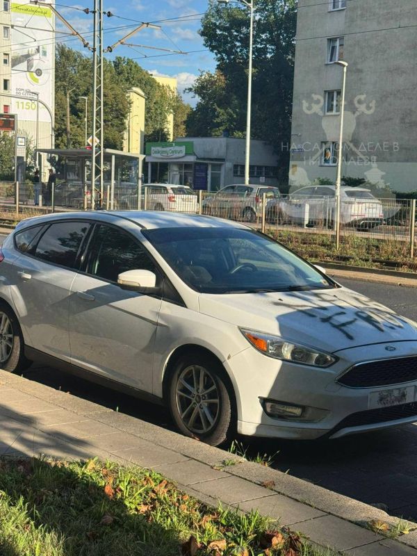 Во Вроцлаве кто-то снял с автомобиля украинские номера и оставил на нём надпись: «На фронт».
