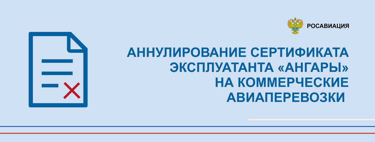 Росавиация аннулирует сертификат эксплуатанта авиакомпании «Ангара» на выполнение коммерческих воздушных перевозок.