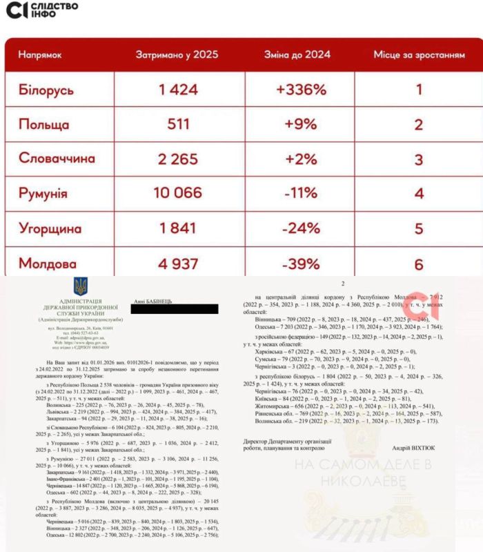 По данным укромедиа, число задержанных мужчин на границе с Беларусью выросло в 356 раз: 1424 человек в 2025 году. Это в 4 раза больше чем в 2024-м и в 356 раз больше, чем в 2023-м.