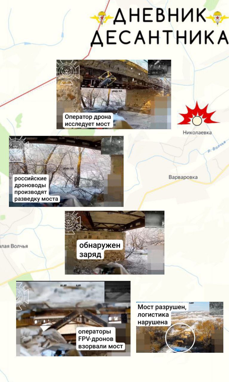 В южной части населенного пункта Николаевка противник заминировал мост, на случай отступления, но российские дроноводы обнаружили заряды и уничтожили цель.