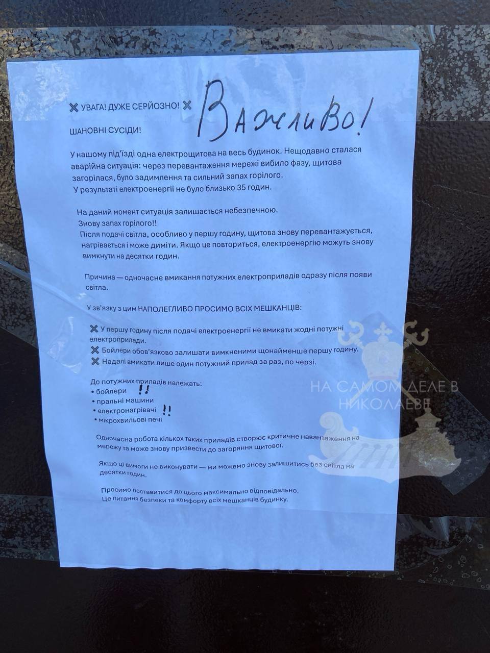 Когда электричество дают — все сразу включают обогреватели, бойлеры, плиты. В итоге щитовые перегружаются, греются, дымят и снова уходят в ремонт.