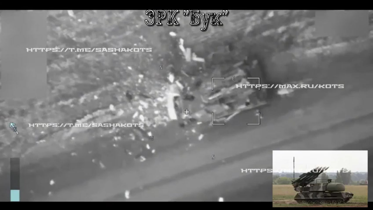 Поражение ЗРК FrankenSAM (ЗРК "Бук-М1" с ЗУР RIM-7 Sea Sparrow) ударом "Ланцета" в районе Вознесенского Днепропетровской области.