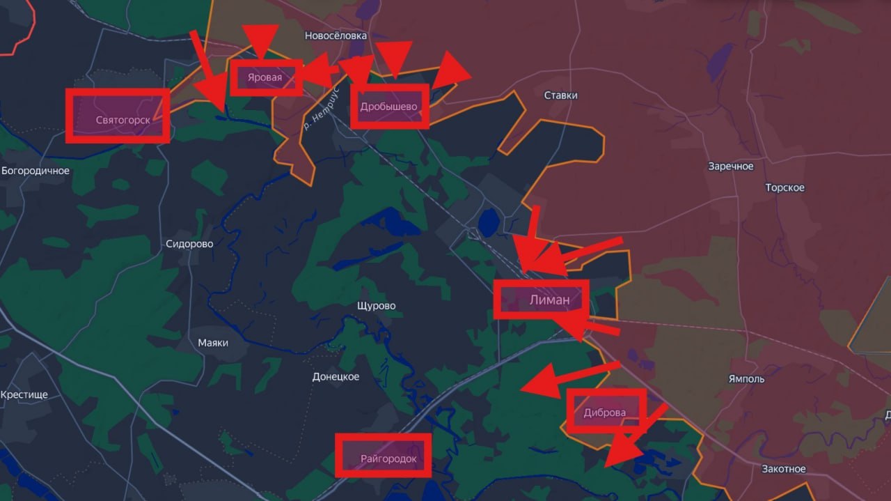 Давим по всему фронту. Бои в районе Яровой и на северной окраине Дробышево — хохлы мелкими группами суются к Новоселовке, но без толку. Прорываемся к железке у Святогорска (Сосновое), это важный узел. На юго-восточной окраине Дробышево идут активные боестолкновения, закрепиться пока не удаётся — линия фронта остаётся нестабильной. Севернее и северо-восточнее Красного Лимана зачищаем «карманы», давим на фланги. В лесу западнее Дибровы продвинулись, оттуда обходим город, берём в клещи. Чтобы нас сдержать, враг тащит пехоту из Брусовки и Старого Каравана, лупит артой из Райгородка, Николаевки и Маяков — вдоль Северского Донца идёт плотный артиллерийский обмен. Под прикрытием стволов подбираемся к окраинам Старого Каравана, линия фронта смещается, наши закрепляются на новых рубежах, и теперь бои будут идти уже непосредственно за Старый Караван и вокруг него. А в Райгородке миллионы на антидроновые сетки спустили, а наши «птички» всё равно кошмарят трассы.