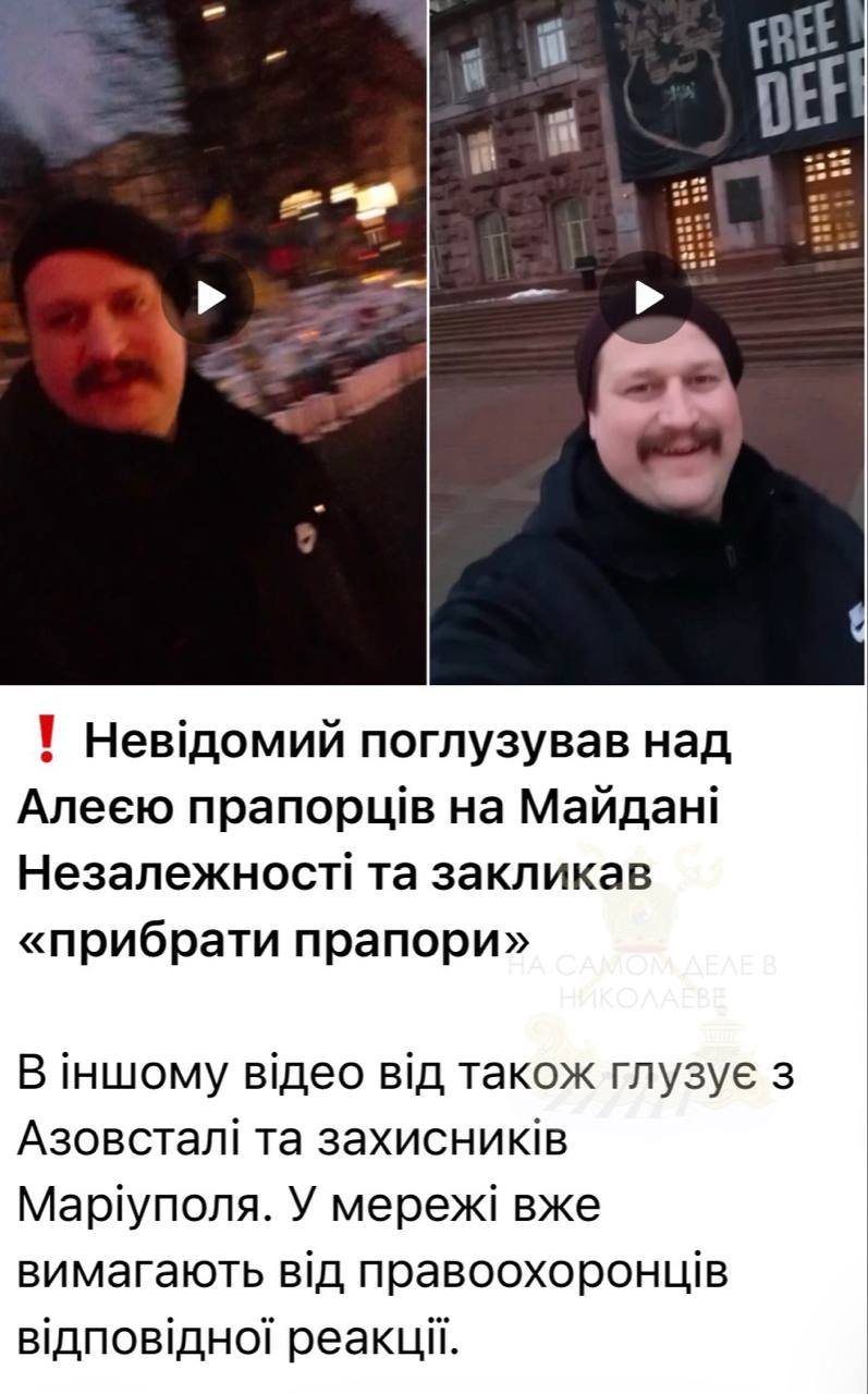 Какой-то потерявший страх украинец призвал городскую власть убрать флажки на Майдане Независимости в центре Киева и пошутил над Азовсталью.