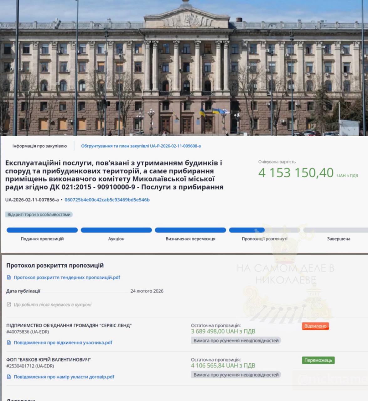 По итогам проведенного тендера мэрия намерена заключить договор на 4,1 млн грн с экс-депутатом Юрием Бабковым.