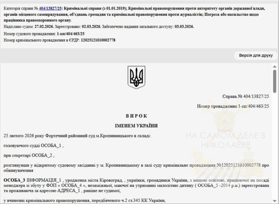 В Кировограде женщину приговорили к двум годам лишения свободы условно за избиение полицейского его же дубинкой во время силовой мобилизации.