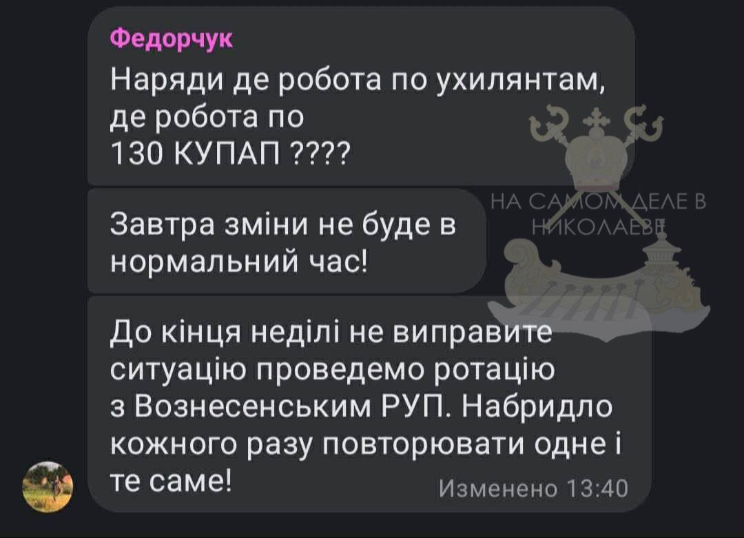 Мусора через местечковые СМИ слили информацию, что руководитель Южноукраинского отделения полиции Федорчук требует от каждой смены «план»: минимум один пьяный водитель по ст.130 КУоАП и один человек для передачи в ТЦК.