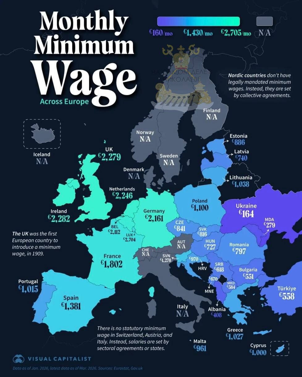 В 2026 году — около 164€ в месяц оценивается труд украинцев. Меньше просто не куда!Для сравнения: