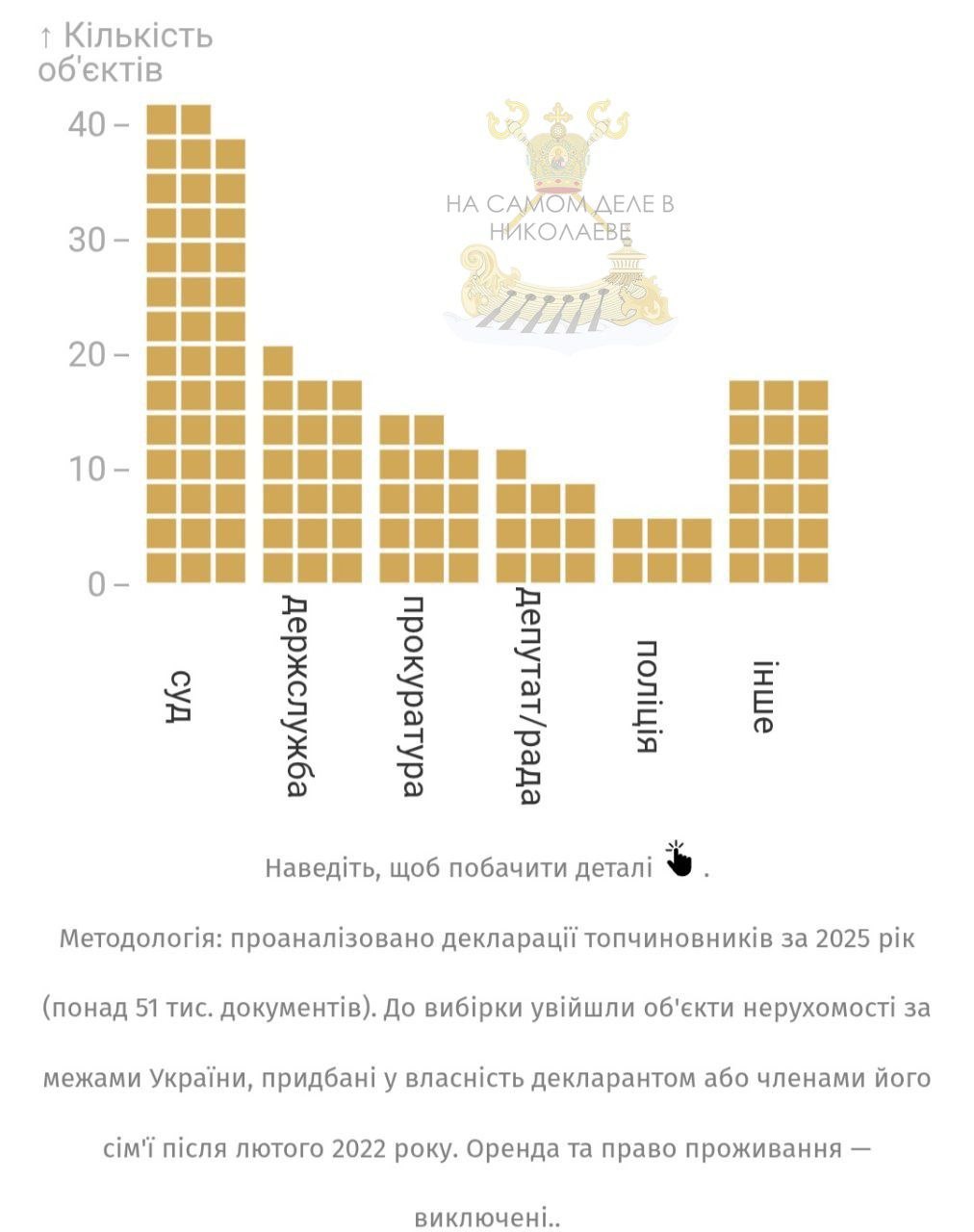 Чаще её приобретают судьи — 41 объект. Также счастливыми обладателями иностранных «хатынок» стали госслужащие, прокуроры, полицаи, нардепы и «другие»