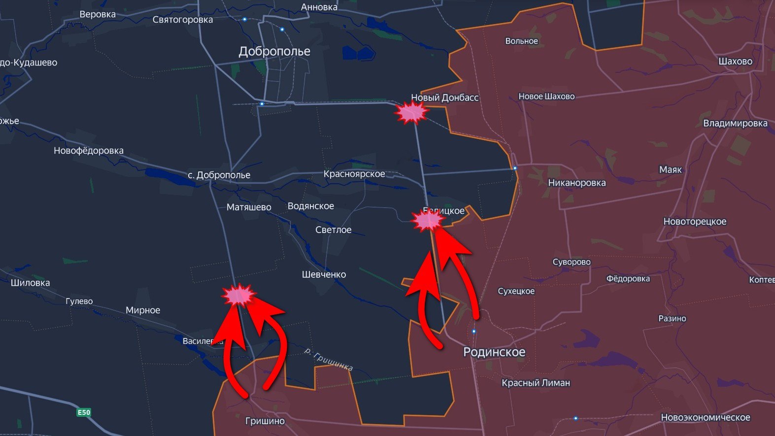 Информации поступает немного, но сообщают об упорных боях в районе самого Красного Лимана. Северо-западнее — тяжёлые бои в лесах между Дробышево и Святогорском. Наши парни пытаются улучшить положение: медленно, через боль, через потери — но двигаются. На участке у Дибровы хохол пытается форсировать Северский Донец и перебросить людей от Райгородка к Старому Каравану.