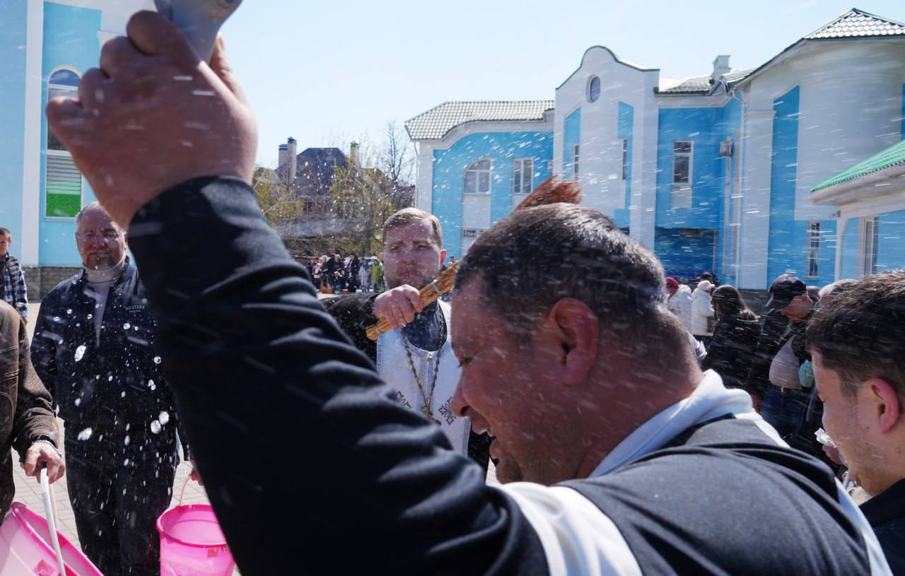 Свято-Николаевский храм Мариуполя в Пасхальные праздники всегда многолюден. Прилив сил и энергии испытывает каждый прихожанин при окроплении святой водой. Освежающие эмоции радуют и детей.Подписаться на @donetsk_kpru...