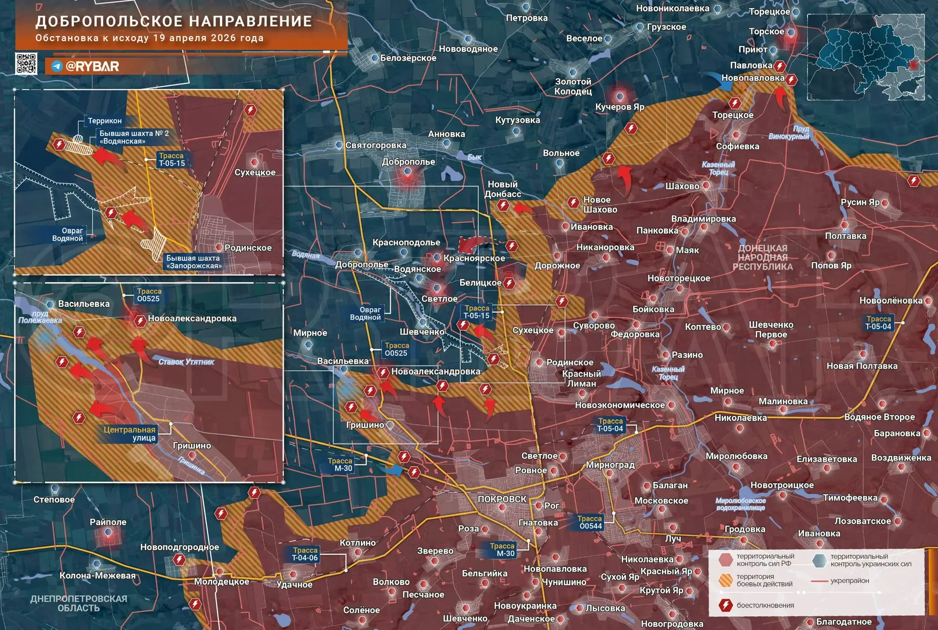 На Добропольском направлении российские подразделения развивают наступление в окрестностях Гришино. Вместе с тем бои постепенно смещаются к Васильевке и Новоалександровке.