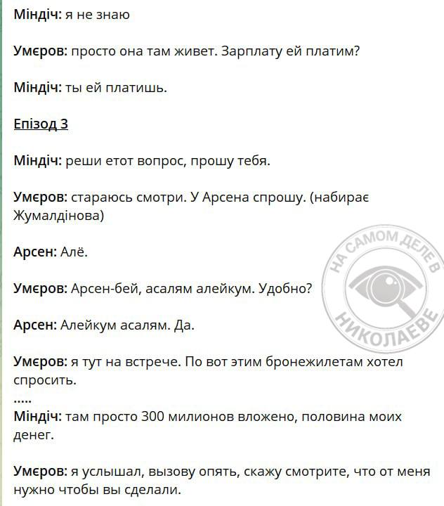 Параллельно идёт обсуждение трудоустройства «своих» и влияние на закупки бронежилетов. И вишенка: заявления о вложенных сотнях миллионов в эту тему.
